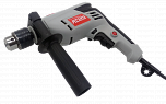 Диаметр патрона 1,5-13 мм. Мощность 1,1 кВт. Частота вращения 3 000 об/мин. Для сверления отверстий в различных материалах и заворачивания/отворачивания винтов и шурупов. Реверс. Электронная регулировка частоты вращения. Ударный механизм.