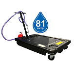 Емкость для слива и откачки масла с предкамерой для контроля количества поступающего масла, емкость бака 80л., с подъемной ванной емкостью 15 л., 6 заборных щупов (пневмопривод), производительность 1,5-2 л/мин , максимальная высота 1850 мм, давление слива масла 0,5 бар, вес 30кг.