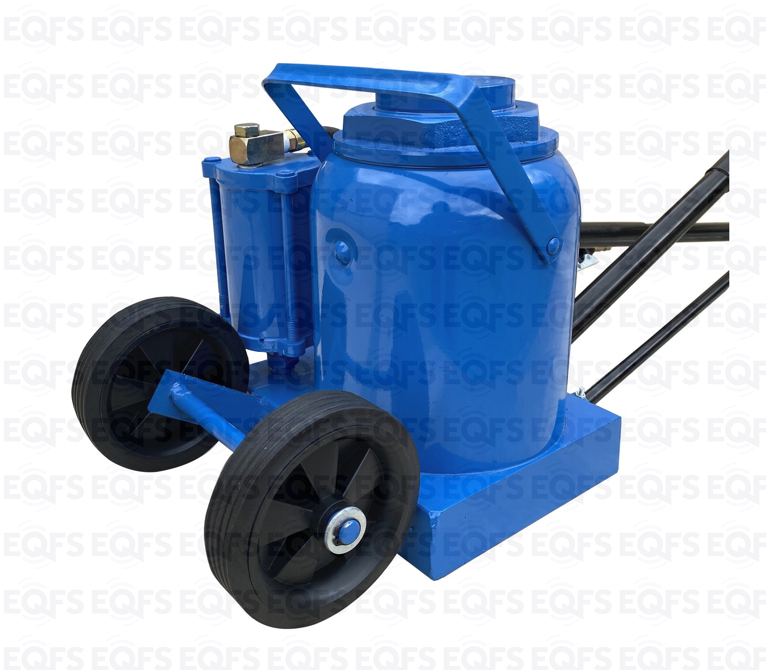 Диаметр металлических колес домкрата, позволяет легко транспортировать его по не ровным поверхностям цеха.