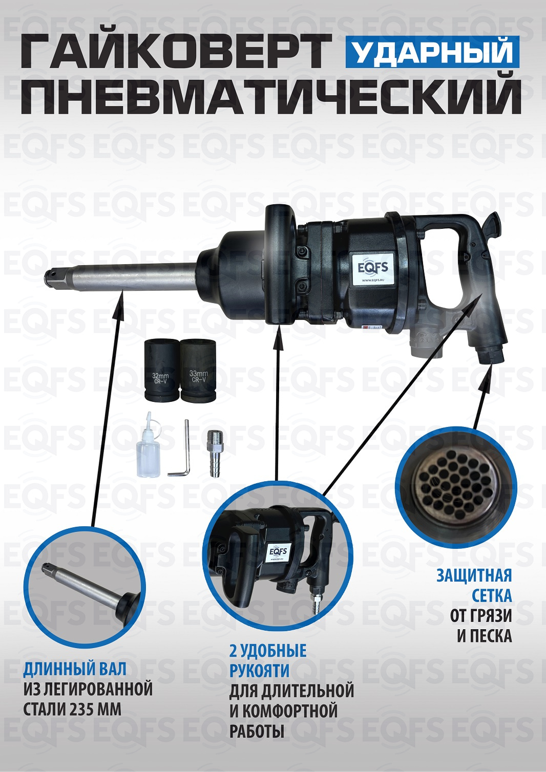 Преимущества ES-7175K Грузовой гайковерт 1" +набор головок: