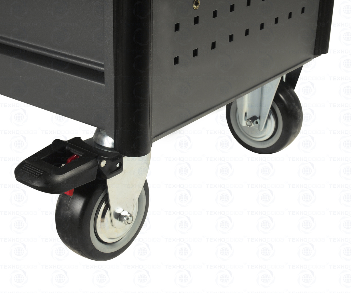 • Колеса размером 5"х2", изготовленные из термопластичного каучука, обеспечивают легкое и бесшумное перемещение тележки.
