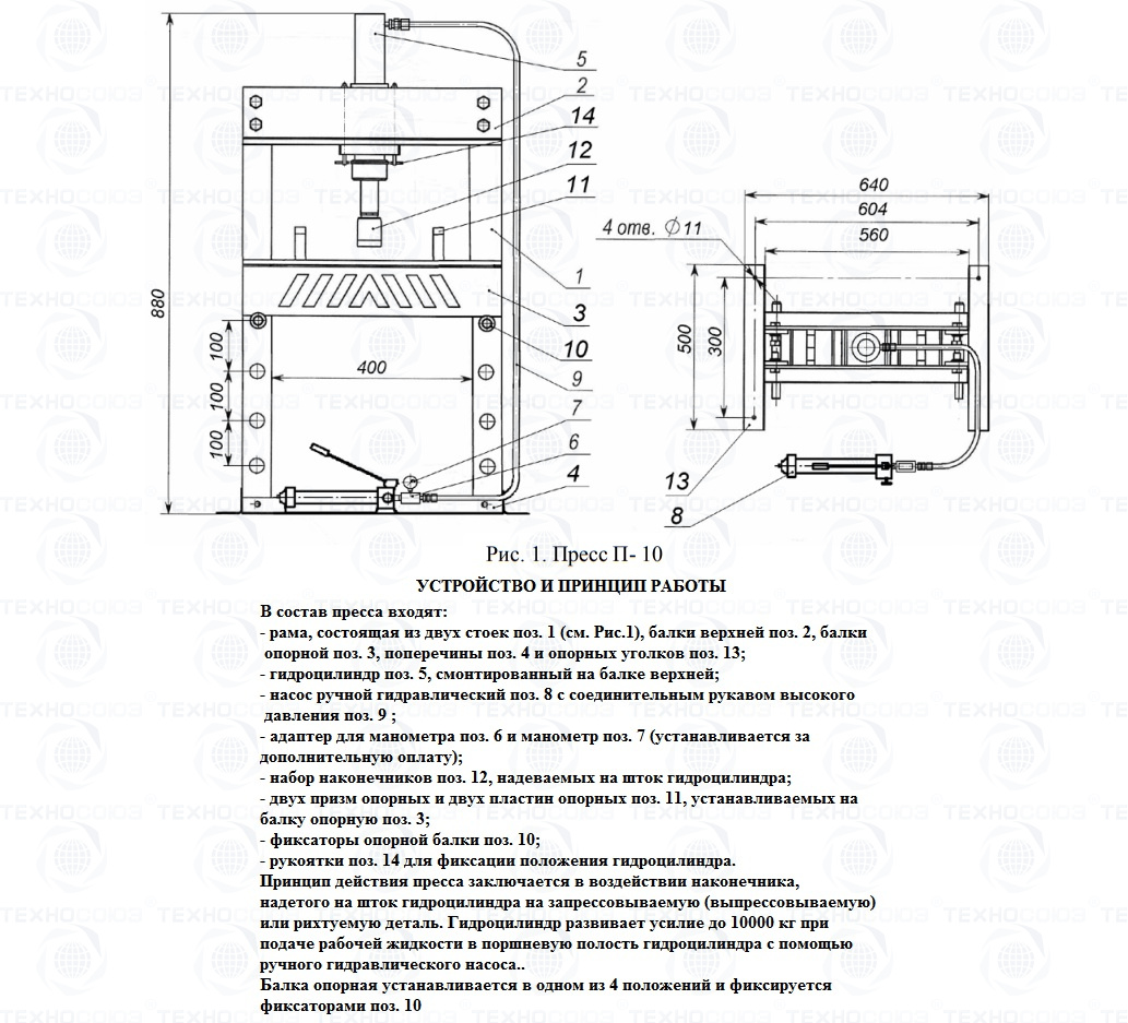 В комплект поставки пресса П-10 входит: