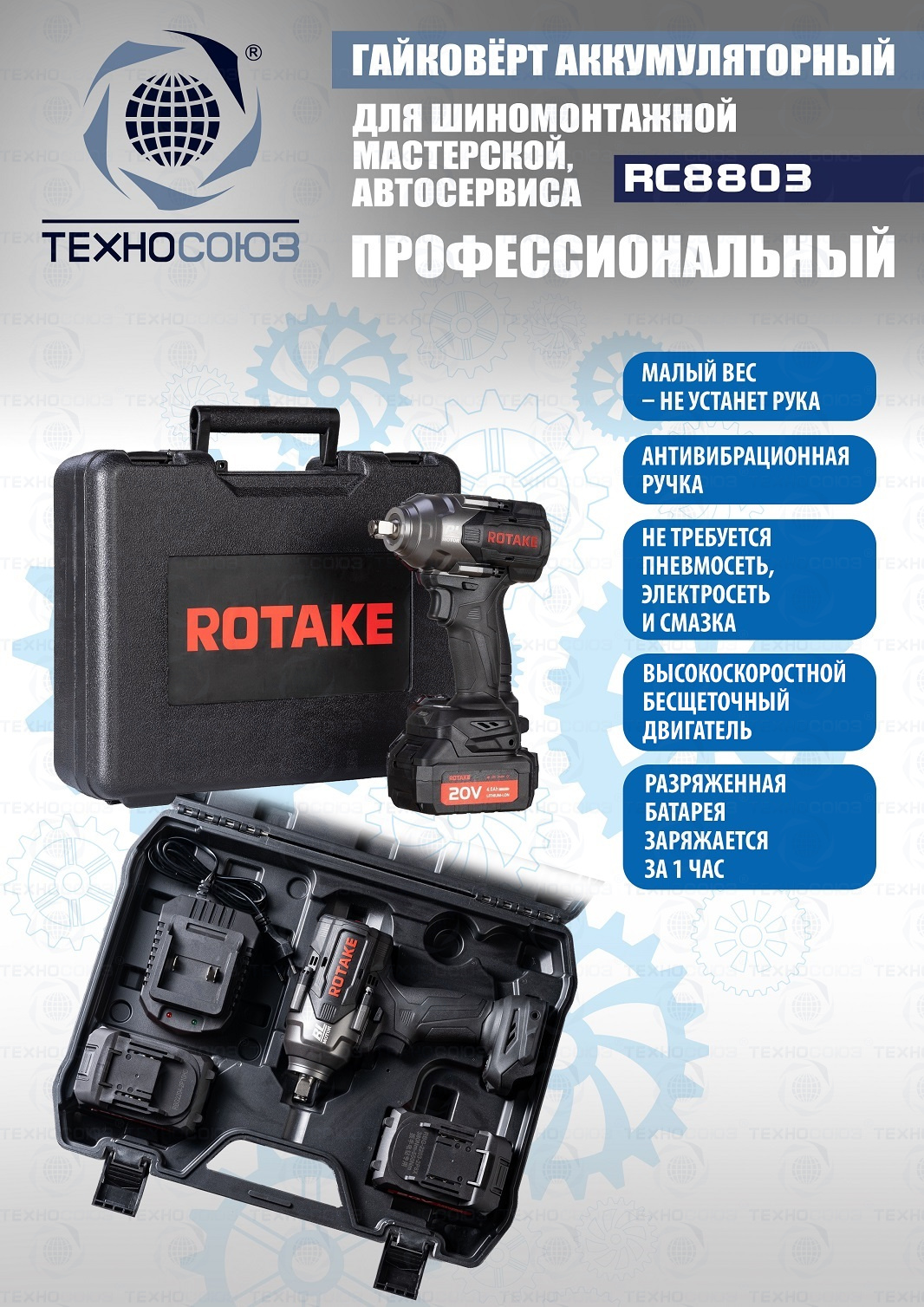Технические особенности ударного гайковерта аккумуляторного RC8803: