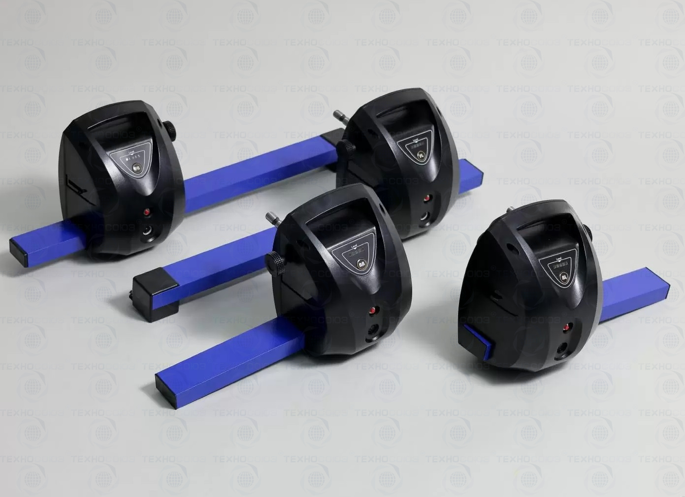 Для колес легковых автомобилей с диаметром обода 12-24 дюйма. Блоки измерительные оснащены электронными уровнями и подключаются к компьютеру посредством кабелей. Работа стенда возможна на 4-х стоечном подъемнике или на ремонтной яме, при обязательном соблюдении требовании по горизонтальности. Без подкатной тумбы.